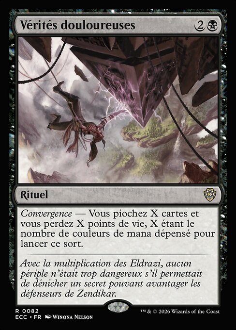 Convergence — Vous piochez X cartes et vous perdez X points de vie, X étant le nombre de couleurs de mana dépensé pour lancer ce sort.