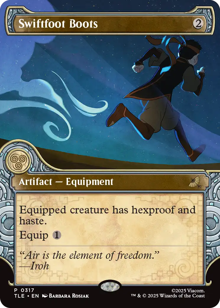 La créature équipée a la défense talismanique et la célérité. (Elle ne peut pas être la cible de sorts ou de capacités que vos adversaires contrôlent.)