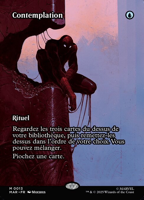 Regardez les trois cartes du dessus de votre bibliothèque, puis remettez-les dessus dans l'ordre de votre choix. Vous pouvez mélanger.