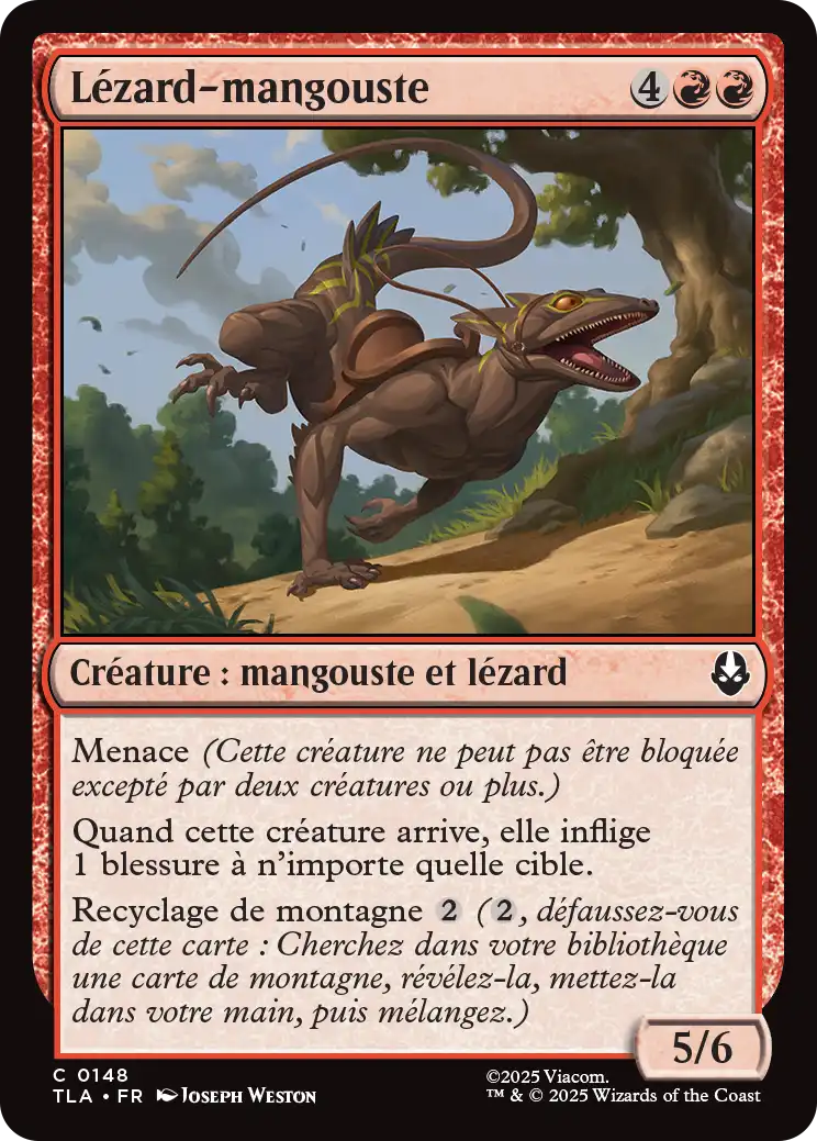 Recyclage de montagne [coût], défaussez-vous de cette carte : Cherchez dans votre bibliothèque une carte de montagne, révélez-la et mettez-la dans votre main. Mélangez ensuite votre bibliothèque.