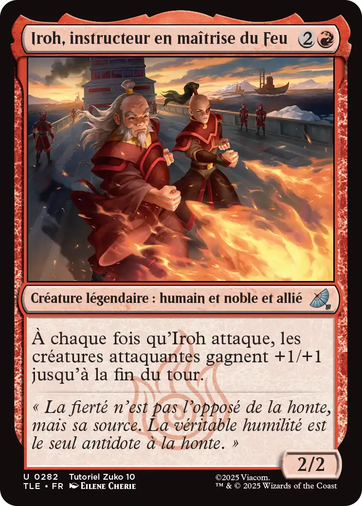 À chaque fois qu'Iroh attaque, les créatures attaquantes gagnent +1/+1 jusqu'à la fin du tour.