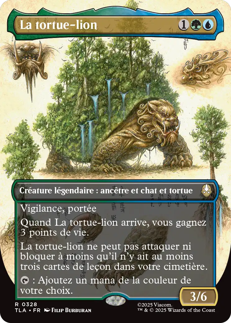 La tortue-lion ne peut pas attaquer ni bloquer à moins qu'il n'y ait au moins trois cartes de leçon dans votre cimetière.
