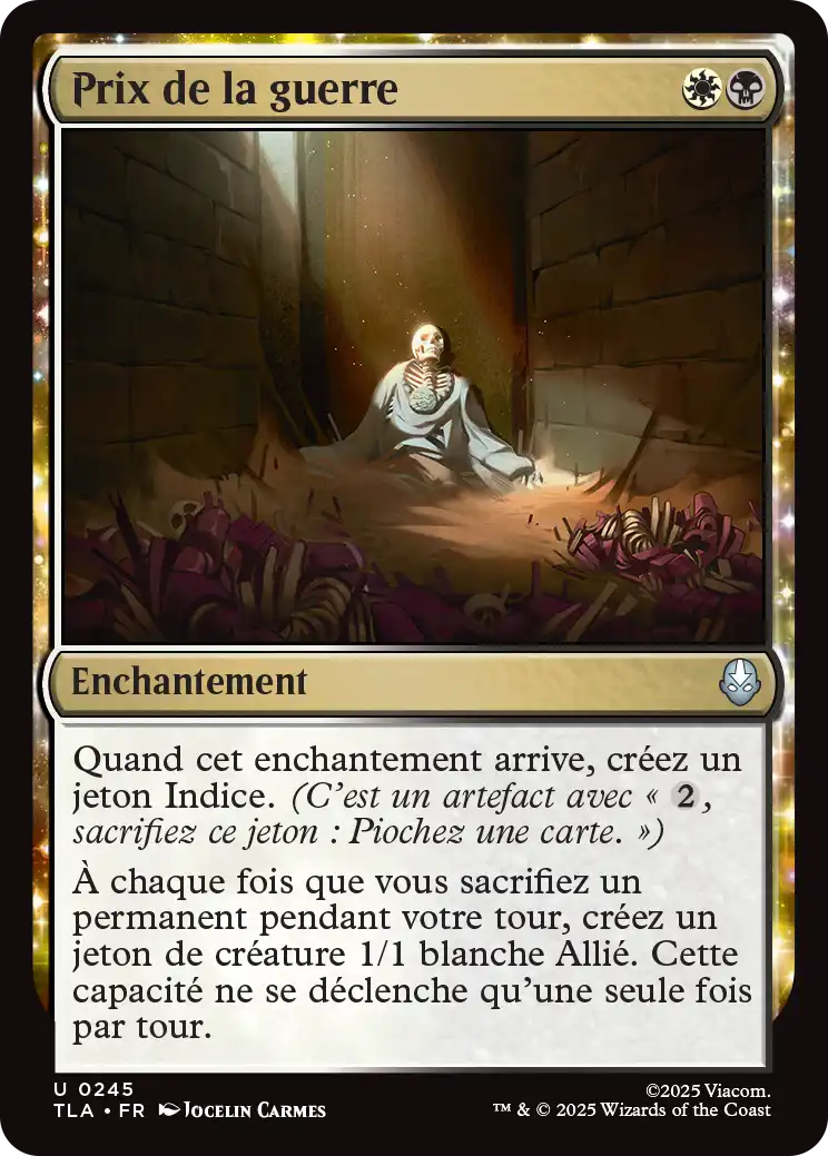 À chaque fois que vous sacrifiez un permanent pendant votre tour, créez un jeton de créature 1/1 blanche Allié. Cette capacité ne se déclenche qu'une seule fois par tour.