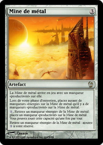 dans l'idée ça fait quand même un peu penser aux accumulateurs de mana ou à certains terrains comme le Caveau insondable. En fait, on dirait bien une version "mana incolore" de ces derniers, plus flexible, toute aussi lente pour accumuler le mana, et beaucoup plus (trop ?) puissante... ouais, au vu des accu (qui sont des daubes, je l'accorde), ça me semble trop bourrin... il faudrait au minimum que la mine s'engage pour l'une et l'autre capa, et que les marqueurs "énergie" soit perdus en fin de tour.