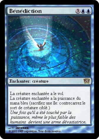 Nouvelle fc et début d'une éventuelle série de fc. La puissance du mana sera la base de la série et servira à représenter une couleur par sa capacité la plus utilisée. Je commence par le bleu car c'est ma couleur préférée et que l'image ne collait pas avec d'autres couleurs.
