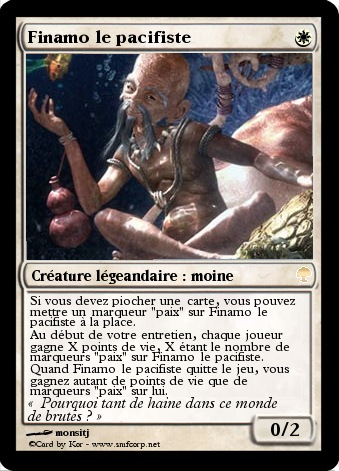 Comme vous pouvez le voir, c'est un moine, qui a l'air d'être très serein. C'est un homme qui veut éviter les guerres, qui veut répendre la paix. C'est pour cela qu'il n'a aucun point d'attaque.