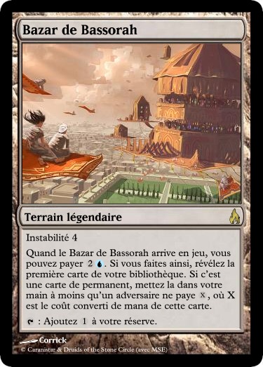 Il y a d'autres bazars dans l'univers de magic : le Bazar de Mercadia, et surtout the Bazaar of Baghdad, dont le Bazar de Bassorah est une référence. En effet, comme je l'ai rappelé précédemment, Bassorah est une ville de Rabiah, un plan qui sera réexploré dans le deuxième block du set.