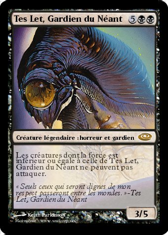 Capa: Les créatures plus faibles que lui ne peuvent pas passer entre les mondes (ou les joueurs) car il les empêche de passer (en tant que bon gardien), et le TA reflète bien ça.