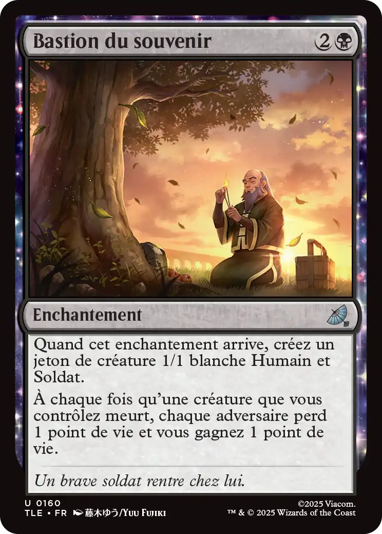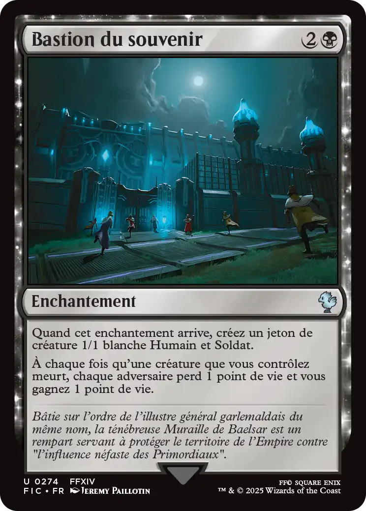 Quand le Bastion du souvenir arrive sur le champ de bataille, créez un jeton de créature 1/1 blanche Humain et Soldat.