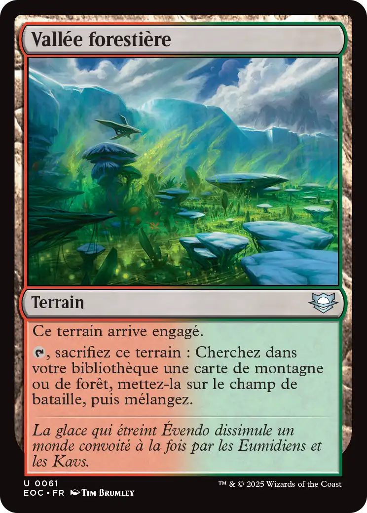 , sacrifiez la Vallée forestière : Cherchez dans votre bibliothèque une carte de montagne ou de forêt, mettez-la sur le champ de bataille, puis mélangez.