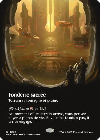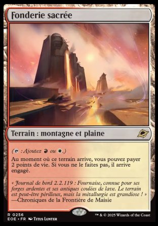 Au moment où la Fonderie sacrée arrive sur le champ de bataille, vous pouvez payer 2 points de vie. Si vous ne le faites pas, elle arrive sur le champ de bataille engagée.