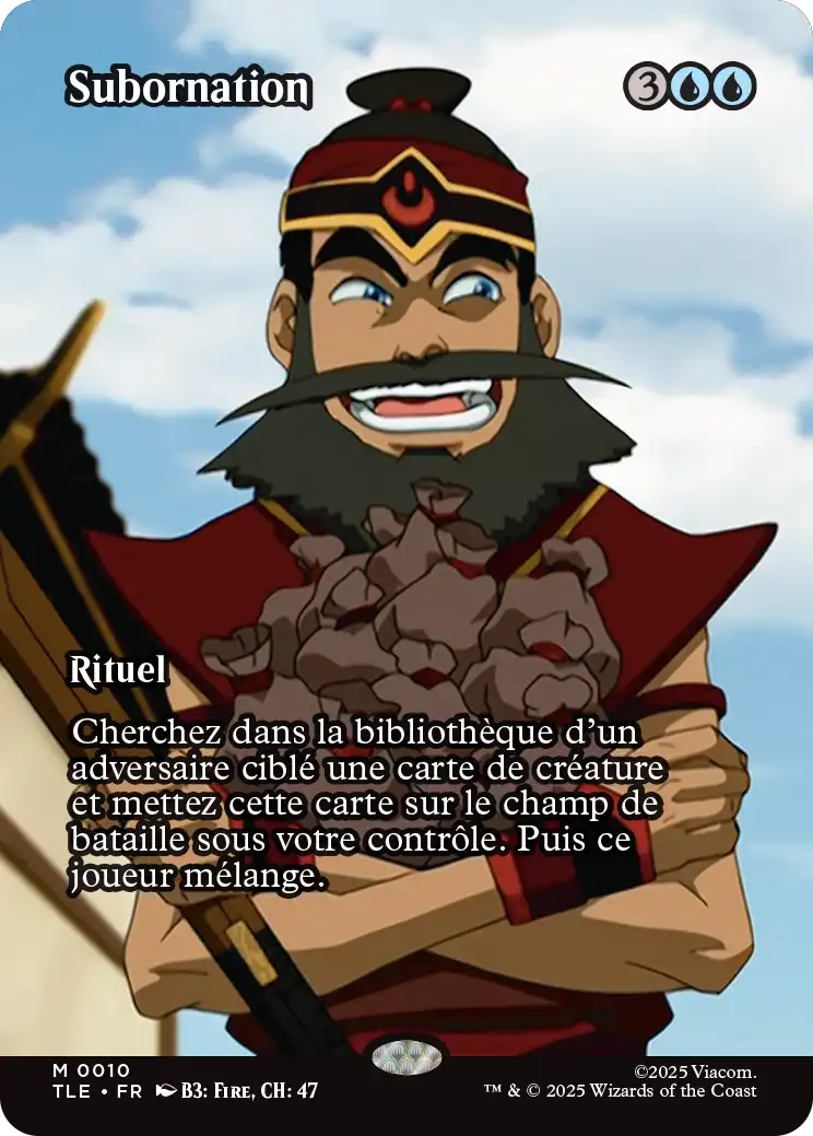 Cherchez dans la bibliothèque d'un adversaire ciblé une carte de créature et mettez cette carte sur le champ de bataille sous votre contrôle. Puis ce joueur mélange.
