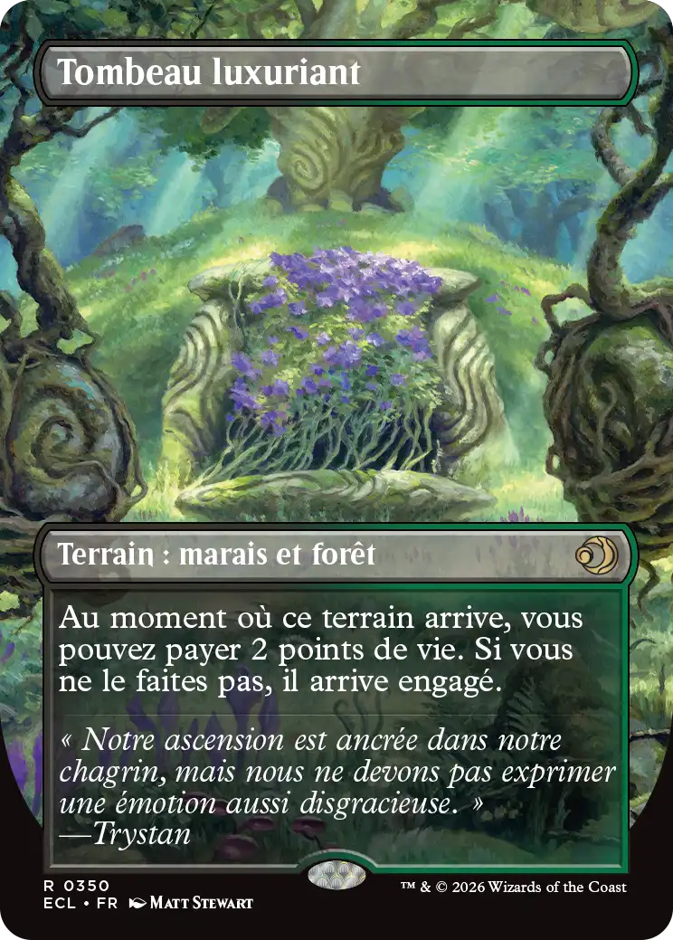 Au moment où le Tombeau luxuriant arrive sur le champ de bataille, vous pouvez payer 2 points de vie. Si vous ne le faites pas, il arrive sur le champ de bataille engagé.
