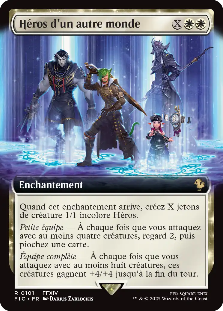 Équipe complète  À chaque fois que vous attaquez avec au moins huit créatures, ces créatures gagnent +4/+4 jusqu'à la fin du tour.