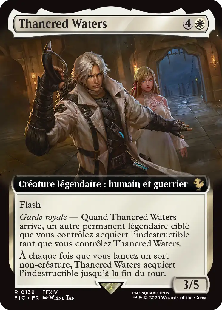 Garde royale Quand Thancred Waters arrive, un autre permanent légendaire ciblé que vous contrôlez acquiert l'indestructible tant que vous contrôlez Thancred Waters.