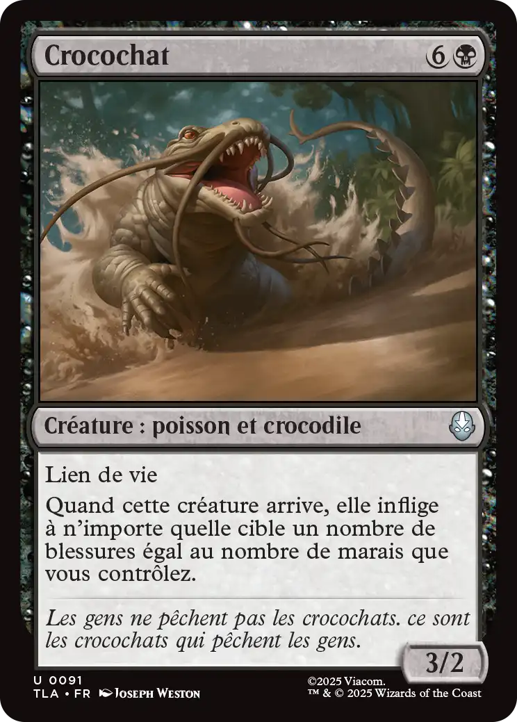 Quand cette créature arrive, elle inflige à n'importe quelle cible un nombre de blessures égal au nombre de marais que vous contrôlez.