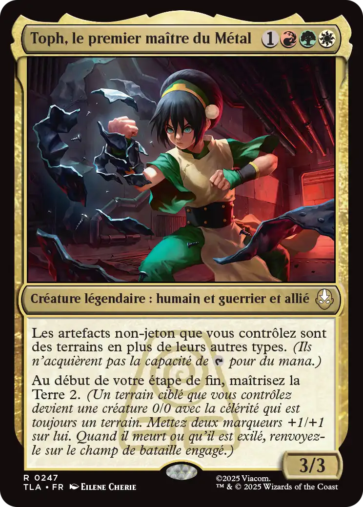 pour du mana.) Au début de votre étape de fin, maîtrisez la Terre 2 qui est toujours un terrain. Mettez deux marqueurs +1/+1 sur lui. Quand il meurt ou qu'il est exilé, renvoyez-le sur le champ de bataille engagé.).