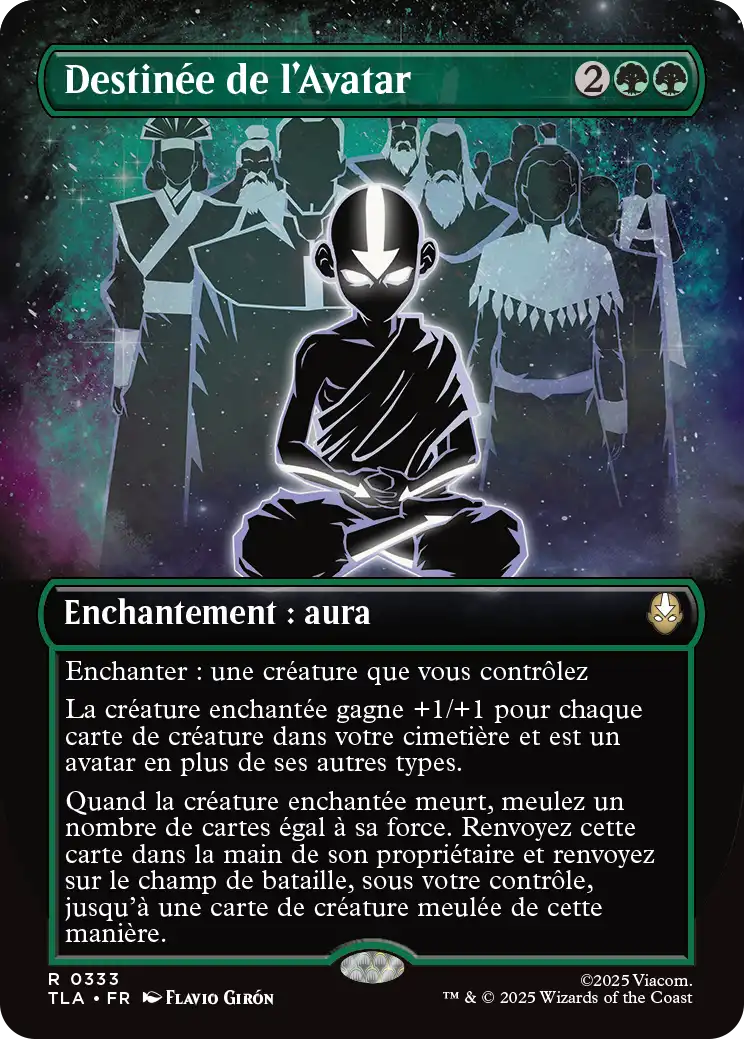 La créature enchantée gagne +1/+1 pour chaque carte de créature dans votre cimetière et est un avatar en plus de ses autres types.