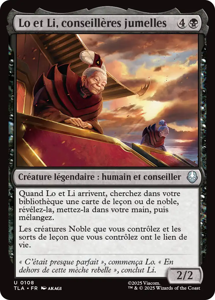 Quand Lo et Li arrivent, cherchez dans votre bibliothèque une carte de leçon ou de noble, révélez-la, mettez-la dans votre main, puis mélangez.