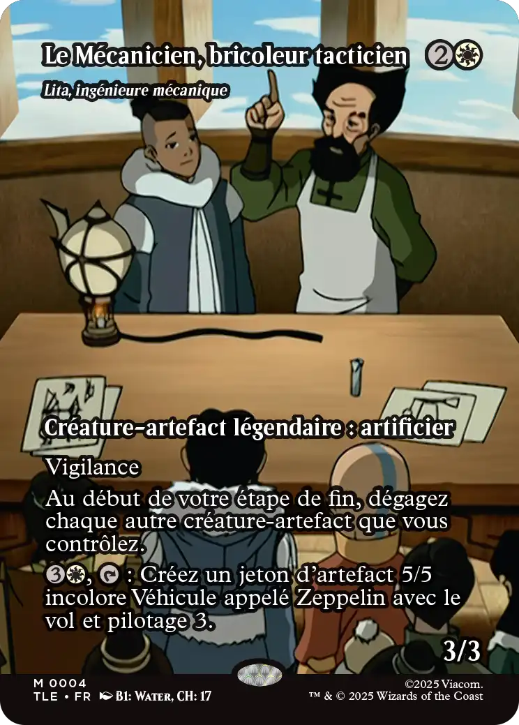 , : Créez un jeton d'artefact 5/5 incolore Véhicule appelé Zeppelin avec le vol et pilotage 3. (Il a « Engagez n'importe quel nombre de créatures que vous contrôlez dont la force totale est supérieure ou égale à 3 : Ce véhicule devient une créature-artefact jusqu'à la fin du tour. »)