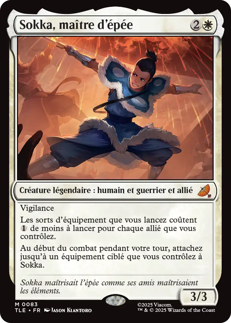 At the beginning of combat on your turn, attach up to one target Equipment you control to Sokka.