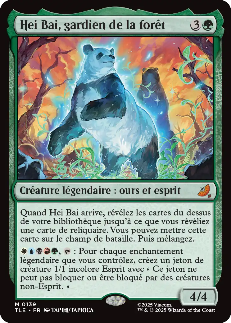 When Hei Bai enters, reveal cards from the top of your library until you reveal a Shrine card. You may put that card onto the battlefield. Then shuffle.