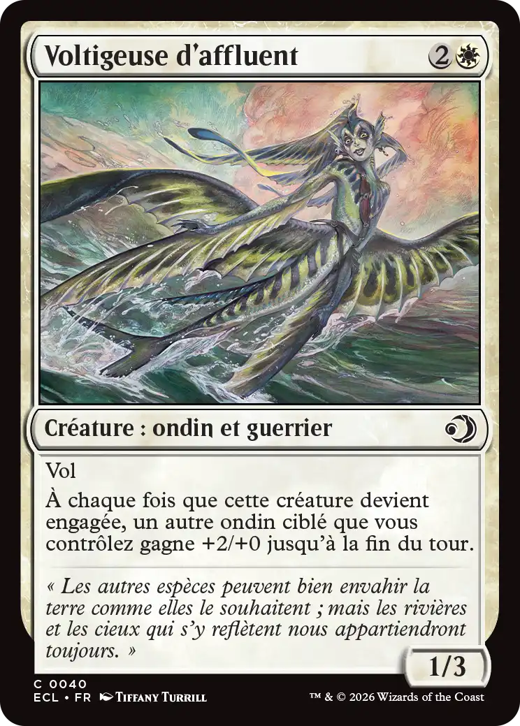 À chaque fois que cette créature devient engagée, un autre ondin ciblé que vous contrôlez gagne +2/+0 jusqu'à la fin du tour.