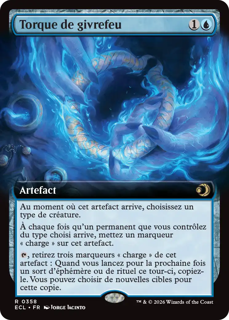 , retirez trois marqueurs "charge" de cet artefact : Quand vous lancez pour la prochaine fois ce tour-ci un sort d'éphémère ou de rituel ce tour-ci, copiez ce sort. Vous pouvez choisir de nouvelles cibles pour cette copie.