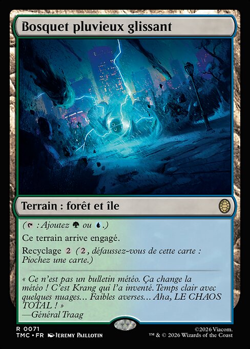 « Ce n'est pas un bulletin météo. Ça change la météo ! C'est Krang qui l'a inventé. Temps clair avec quelques nuages... Faibles averses... Aha, LE CHAOS TOTAL ! »