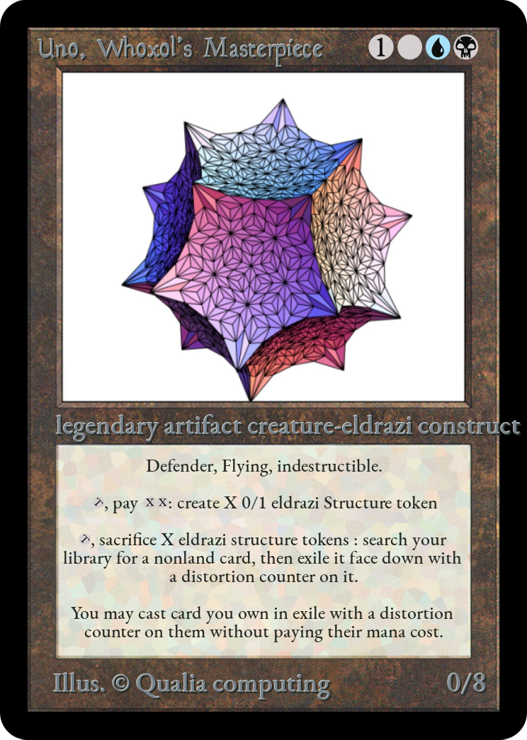 Un autre eldrazi ! Tuteur et moteur à bloqueurs, cette créature peut vite devenir un problème... Synergise parfaitement avec son créateur Whoxol. Cette carte a été réalisée sur l'app MTG ca...