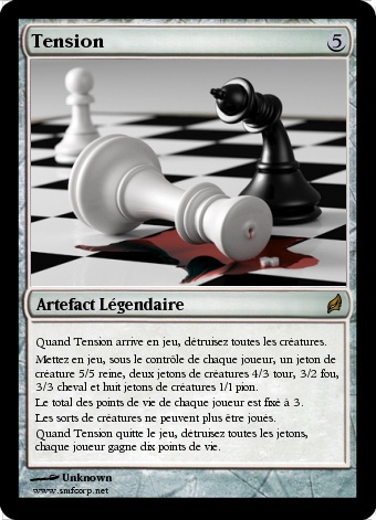 -type : artefact légendaire : bah oui deux en jeu ça serait c....t et pis artefact pasque tout le monde doit pouvoir la jouer.