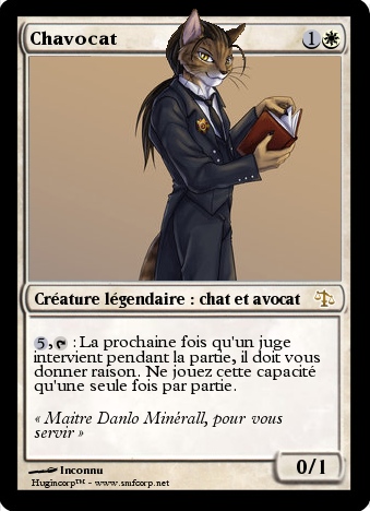 Perso je trouve que cette carte est assez marrante et bien faite ! Un Chatavocat c'est pas tout les jours qu'on en voit héhé .