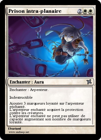 -La capacité suivante aurait un sens sur un rituel ou un éphémère, mais pas ici : comme c'est un permanent, il faut un évènement pour déclencher cette capacité. Typiquement, "Quand la Prison intra-planaire arrive en jeu..."