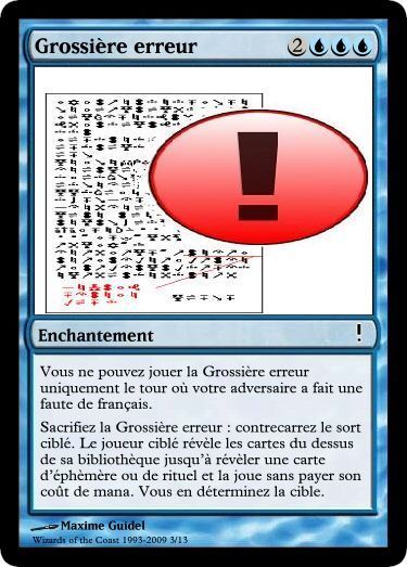 Eh bien non, tu ne paraît pas embêtant. Au contraire très instructif. Effectivement, ta formulation est meilleure et je m'excuse de cette imprécision. (je ne suis qu'un néophyte à Magic : je n'y joue que depuis 4 mois)