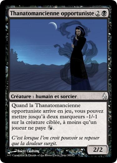 Concernant la carte en elle-même, c'est une sorcière de Rabiah, comme le Prêcheur de l'aridité, et la carte utilise le SE du deuxième block de mon set.