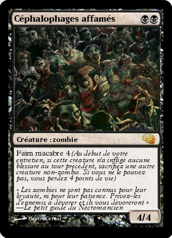 Me voilà de retour avec cette fois une funcard zombie. J'ai voulu ajouter aux zombies de MTG la faim de cerveaux qu'on leur connaît dans de nombreux films, livres, BD etc...