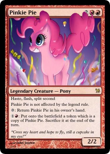 : Mettez sur le champ de bataille un jeton qui est une copie de Pinkie Pie. Sacrifiez-le à la fin du tour.
