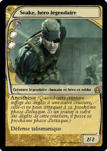 je trouve que 2/2 c'est pas suffisant pour snake et puis il aurait fallut un effet ou il utilise une arme c'est toujours mieux mais elle est bien trouvé