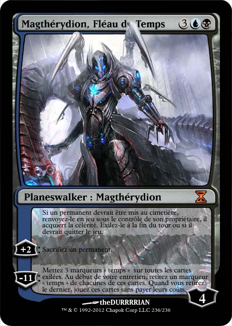 Sinon voilà ce qu'il en résulte: Un Planeswalker Bleu-Noir, Horloge de la mort dont chacun des tics vous rappellent que vous et votre Plans devriez être disparut et oubliés depuis déjà trop longtemps.
