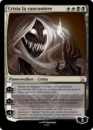 Voila pour résumer elle maudit un à un les permanents non-terrain de l'adversaire et en prend le contrôle au besoin, en sachant que la croissance de sa rancune est exponentielle.